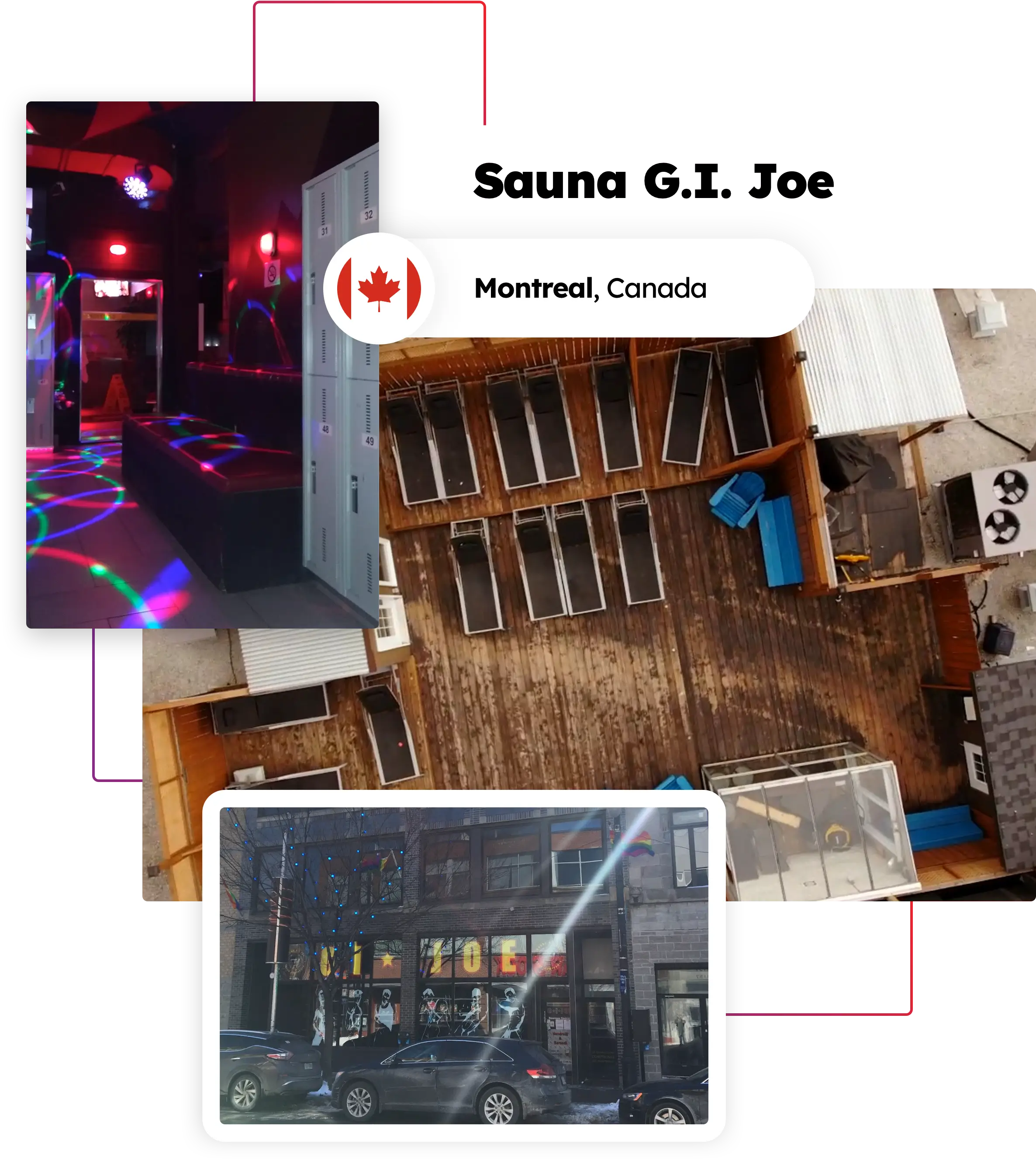 Montreal, Canada - Sauna G.I. Joe is a colossal four-floor facility that recently underwent renovations in July 2024. Now better than ever, it features a spa, dry sauna, steam room, showers, glory holes, equipped play areas, and a rooftop terrace. With special rates and events, it’s a hub of excitement. Dive into the revamped G.I. Joe for a memorable time in Quebec!